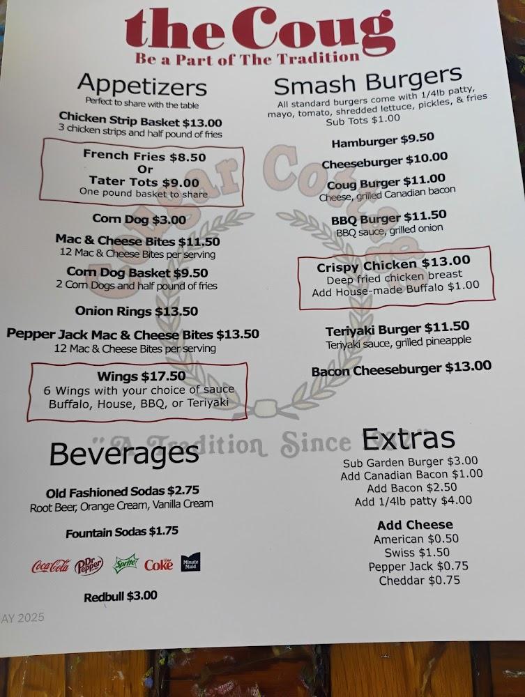 The menu at The Coug features a solid selection of American bar and pub fare. Crowd-pleasing items like Smash Burgers take center stage, with choices ranging from classic cheeseburgers to BBQ variants. Prices are reasonable, averaging around $14.69 for these hearty burgers. For lighter options, there are appetizers like cheese curds and onion rings, perfect for sharing.